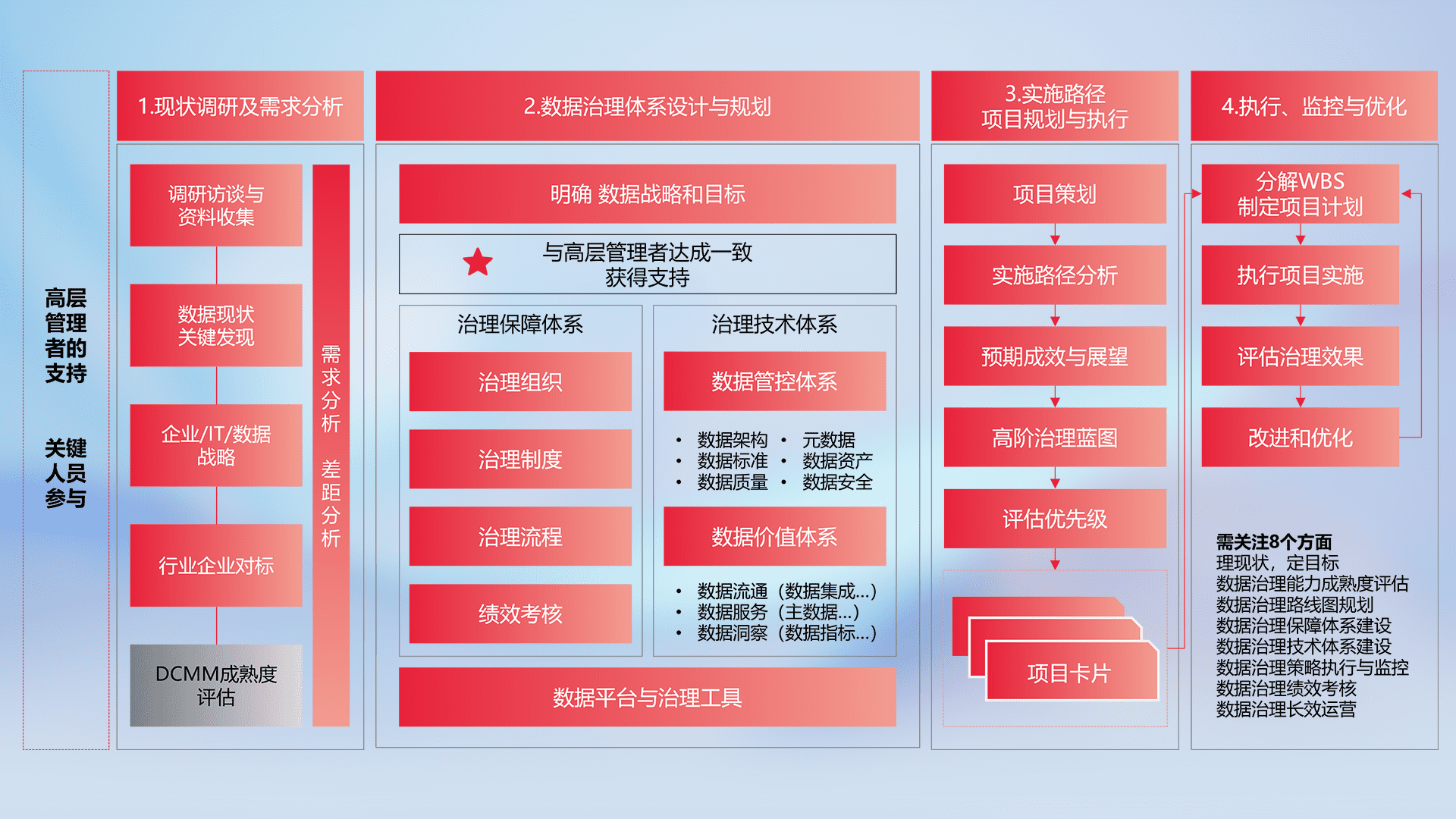制定并执行统一的数据标准,,,,规范数据定义和格式,,,,消除冗余和不一致性,,,实现跨部门和跨系统的数据一致性,,,为企业提供标准化的数据基础。。。。